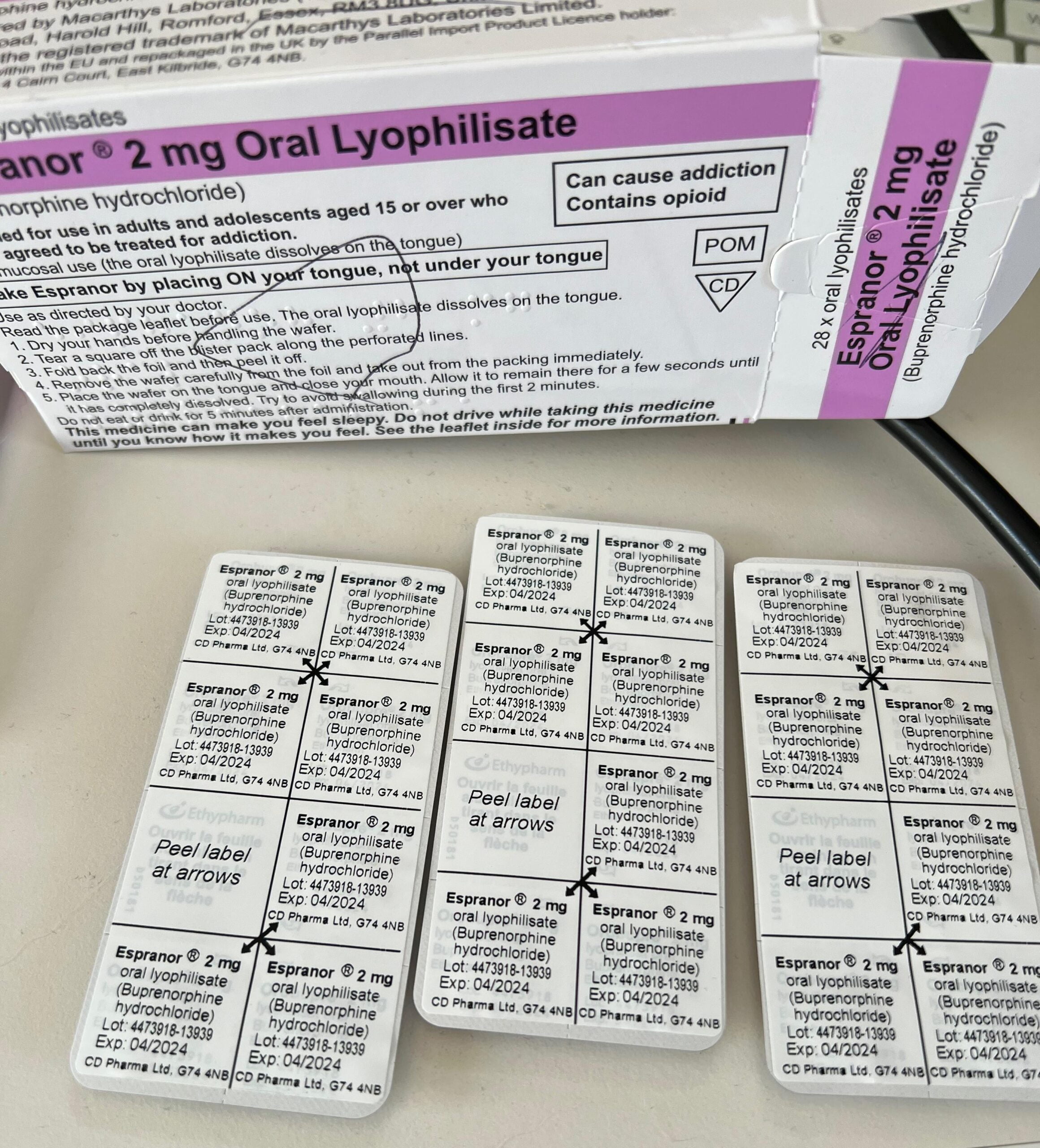 Administration is oromucosal. Treatment should be under the supervision of a clinician experienced in the management of opiate dependence/addiction. Espranor is not interchangeable with other buprenorphine products. Different buprenorphine products have different bioavailability. Therefore, the dose in mg can differ between products. Once the appropriate dose has been identified for a patient with a certain product (brand), the product cannot readily be exchanged with another product. The route of administration for Espranor is on the tongue, not under it, Espranor 2mg and 8mg for sale UK.